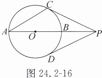 如图 24.2 - 16 所示,直线 $PO$ 是$\odot O$ 的割线,交$\odot O$ 于点 $A$,$B$,$PD$ 切$\odot O$ 于点 $D$,$AC$ 是$\odot O$ 的一条弦,且 $PC = PD$.