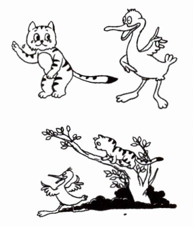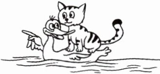 “但是我不会游泳,我怎么到那儿呢?”猫担心起来。鸭子说:“不要担心,我会游泳。你只要坐在我的背上就行了。”