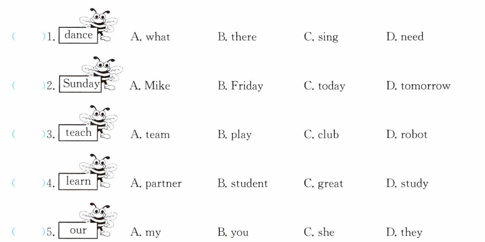 1. C 2. B 3. B 4. D 5. A