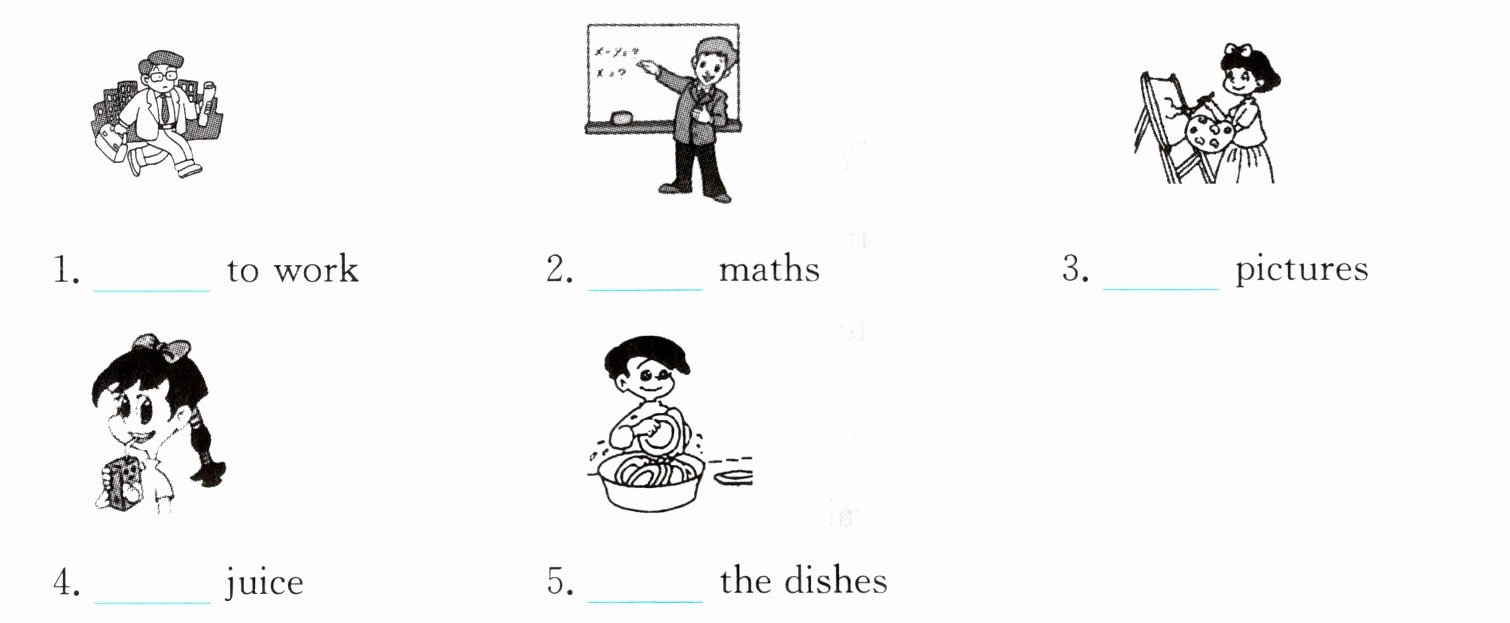 )5. 教英语A. clean the bedroom B. teach English