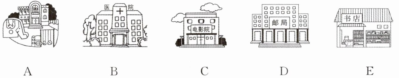 四、读句子,猜地点,把图片序号写在题前的括号里