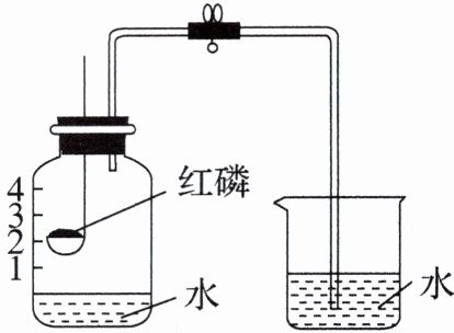 ③白磷停止燃烧后撤离酒精灯,等到集气瓶冷却至室温后,打开弹簧夹,发现有水倒吸入集气瓶内,倒吸入瓶内的水的体积约为 $25\ {mL}$。
