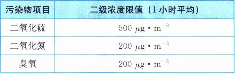 6. 我国空气质量标准对空气中部分污染物的浓度限值规定如下表所示,某化学兴趣小组用自制的微型空气质量监测仪检测不同地方的空气质量,测得市区中心的空气质量相关数据如图所示。