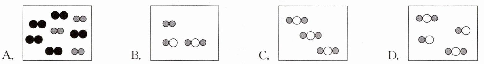3. 用微观模拟图表示物质的构成是化学学科常用的表达方法。以下各图能表示纯净物的是(图中不同小球代表不同原子)(