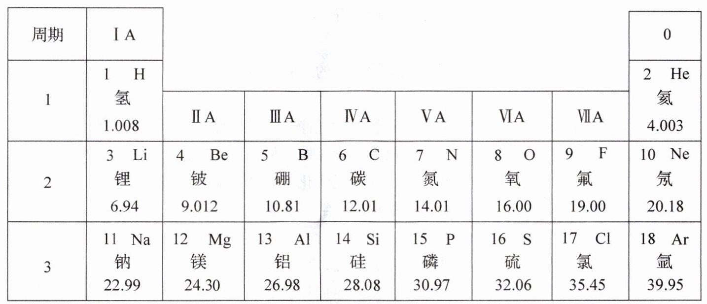 10. (湖南岳阳中考改编)元素周期表是学习和研究化学的重要工具,下面是元素周期表的部分内容,请根据下表回答问题。