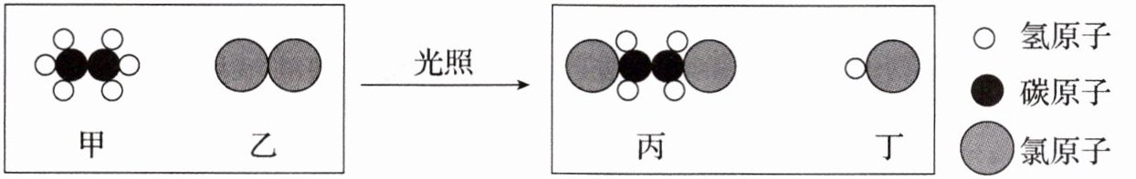 5. 乙烷( $ C_2H_6 $ )是重要的化工原料,能与氯气反应,反应前后分子种类变化的微观示意图如图。下列说法正确的是(