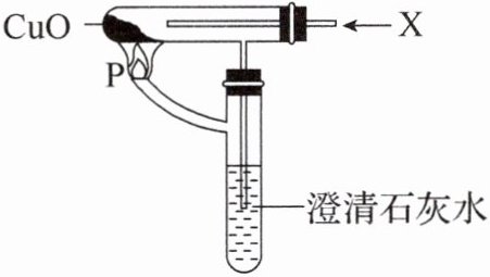 4. 在右图装置中通入 $ {X} $ 气体,并在管口 $ {P} $ 处点燃,实验结束时,澄清石灰水变浑浊,则 $ {X} $ 可能是(