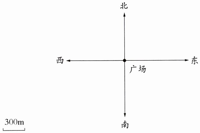 距离:$1200÷300 = 4$(厘米),在图上从广场出发,沿西偏南$45^{\circ}$方向画$4$厘米,标注小彬家。