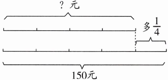 解析:把要求的钱数看作单位“$1$”,$150$元对应的分率是$(1 + \frac{1}{4})$,用$150$元除以它所对应的分率,即可求出单位“$1$”的量。