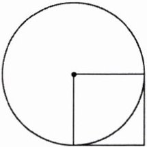 2. 如图,一个正方形的内部有一个$\frac{1}{4}$圆(涂色部分)。已知正方形的面积是$10\mathrm{cm}^2$,扇形(涂色部分)的面积是多少?