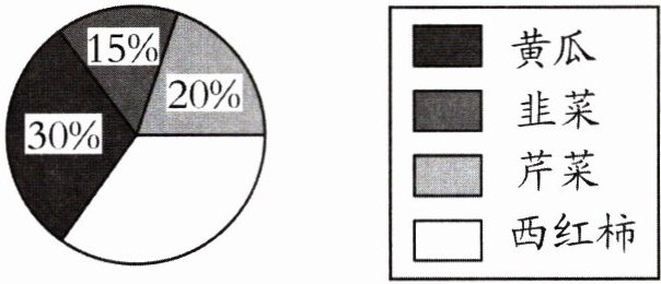 赵大爷家有一块$400m^2$的菜地,分别种植了黄瓜、西红柿、芹菜和韭菜,它们的种植面积的情况如下图所示。每种蔬菜的种植面积各是多少平方米?