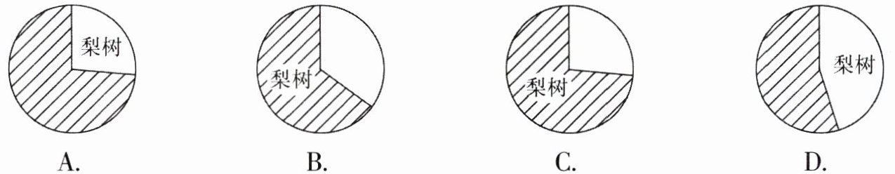 解析:本题主要考查扇形统计图的知识点,需要计算种植梨树的面积占总面积的比例,再根据比例判断对应的扇形图。