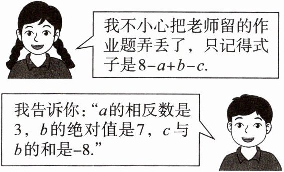 (2)因为a=-3,b=±7,c和b的和是-8,所以当b=7时,c=-15;当b=-7时,c=-1.当a=-3,b=7,c=-15时,8 - a + b - c=8-(-3)+7-(-15)=33;当a=-3,b=-7,c=-1时,8 - a + b - c=8-(-3)+(-7)-(-1)=5.