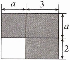 $(a^{2}+3a+6)$ $a^{2},3a,6$ 2 解析:题图中的阴影部分包括三个图形,一个是边长为a m 的正方形,面积为$a^{2}m^{2}$;一个是长为3 m、宽为a m 的长方形,面积为$3am^{2}$;一个是长为3 m、宽为2 m 的长方形,面积为$6m^{2}$,所以阴影部分的面积为$(a^{2}+3a+6)m^{2}$.它的项为$a^{2},3a,6$,次数为2.