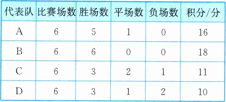 9. 某市组织了一次足球比赛.下表记录了比赛过程中部分代表队的积分情况.