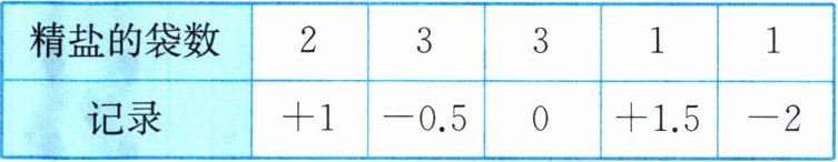解:10袋盐的标准总质量为 $100 × 10 = 1000$ g。