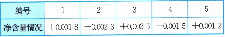 (2)绝对值越小,越符合标准,故第5瓶最接近规定的净含量.