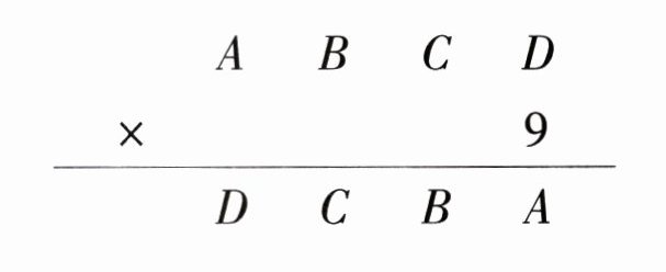 因为$ABCD×9 = DCBA$,是一个四位数乘以$9$还是四位数,所以$A = 1$。