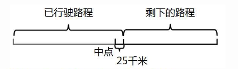 剩下的路程比全程的一半少25千米,即($\frac{x}{2} - 25$)千米。