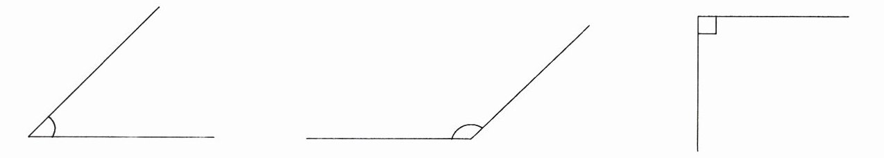 解析:本题主要考查对锐角、直角、钝角、平角和周角的认识。锐角是小于$90^\circ$的角,直角是等于$90^\circ$的角,钝角是大于$90^\circ$而小于$180^\circ$的角,平角是等于$180^\circ$的角,周角是等于$360^\circ$的角。