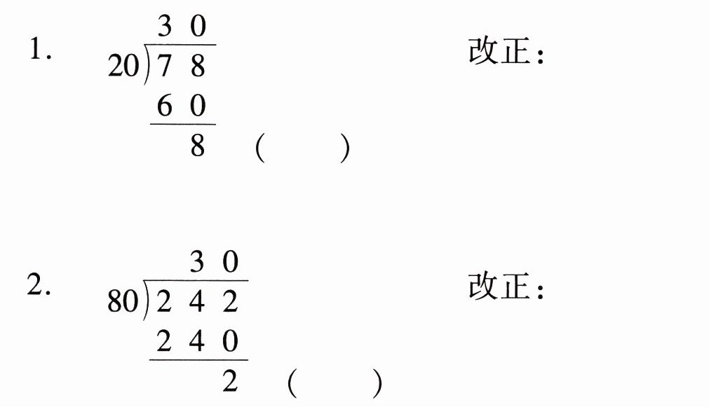 解析:这些题目考查的是除法的竖式计算,特别是当除数和被除数都是两位数时,如何进行笔算。