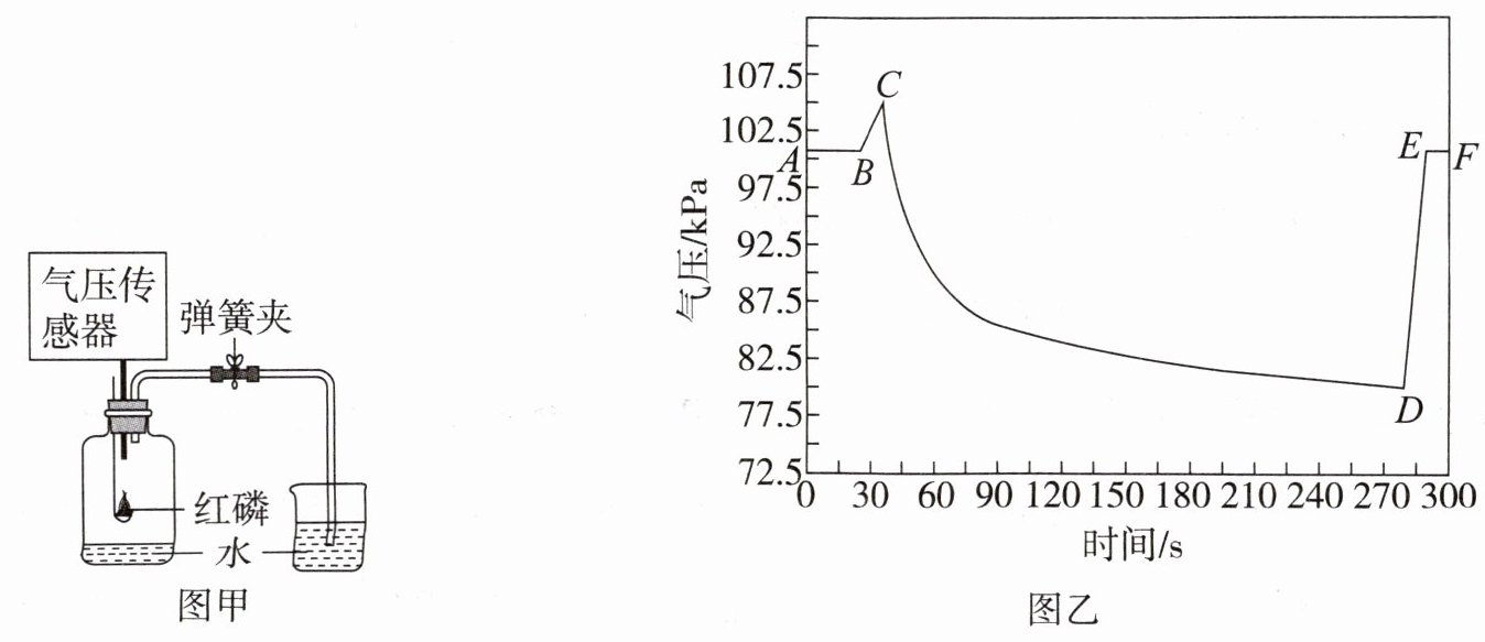6. (数字化实验)如图甲是某化学兴趣小组利用气压传感器测定红磷燃烧时集气瓶内气压变化的实验装置。图乙是集气瓶内气压随时间的变化情况。下列说法中不正确的是 ( )