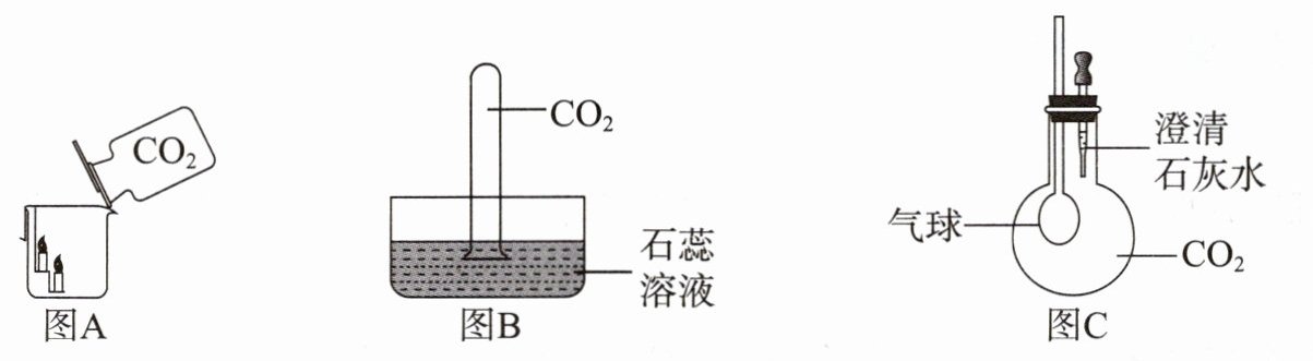 (1) 小亮同学将集气瓶中的二氧化碳沿烧杯壁缓缓倒入烧杯中(如图A)。通过观察到的现象说明二氧化碳具有的物理性质是______,根据该实验说明二氧化碳可用于______。