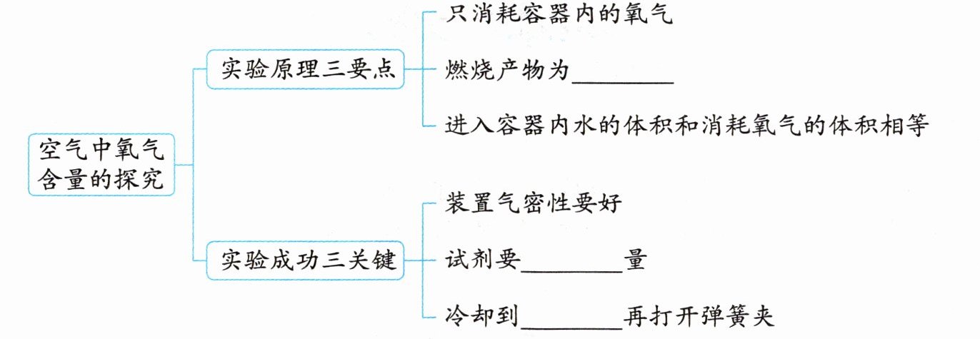 D 解析:该实验仿照拉瓦锡实验的原理,探究空气中氧气的含量,A项正确;实验时红磷一定要足量,才能将集气瓶内的氧气尽量消耗掉,B项正确;实验前一定要检验装置的气密性,如果装置漏气,则进入集气瓶中的水偏少,实验结果偏小,C项正确;红磷燃烧生成大量白烟(五氧化二磷固体),并放出大量的热,D项错误。