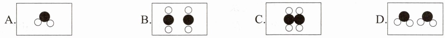 7. 用“○”表示氢原子,“●”表示氧原子。下列方框中,符合“$2H_{2}O$”所表示意义的是 ( )