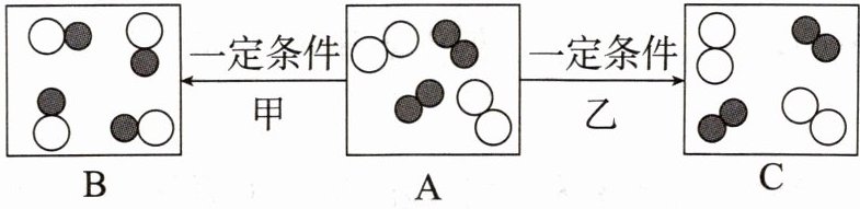 (2)从微观角度:用“○”表示氮原子,“●”表示氧原子。用“○○”可表示的微观粒子是____(填名称)。如图是氮气和氧气在不同条件下发生变化的微观示意图,其中属于化学变化的是____(填“甲”或“乙”),请从微观角度分析理由:____,所属的基本反应类型为____。