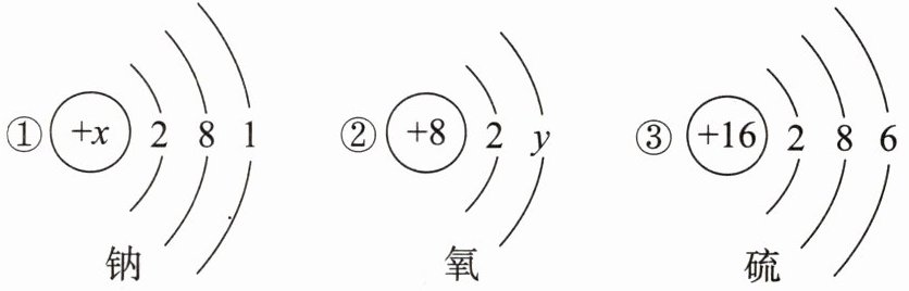 5. 下图为钠、氧、硫三种原子的结构示意图,回答下列问题。