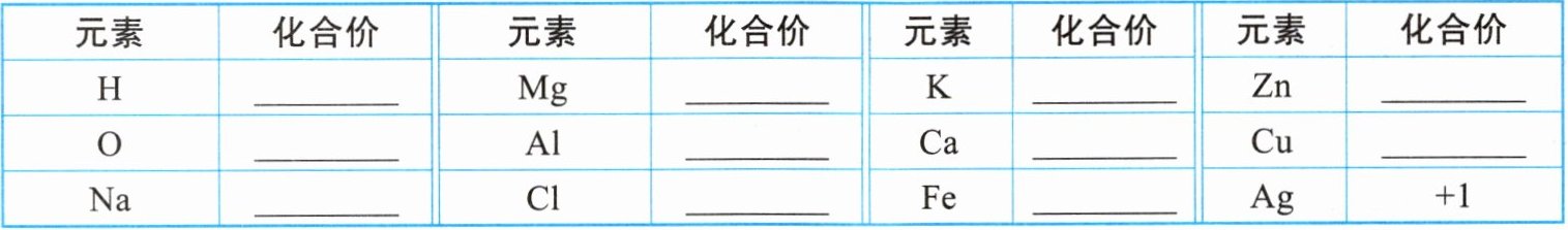 |元素|化合价|元素|化合价|元素|化合价|元素|化合价|