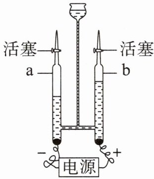 (1) 如右图所示,在电解器玻璃管里加满水,接通______,观察并记录两个电极附近和玻璃管内发生的现象。