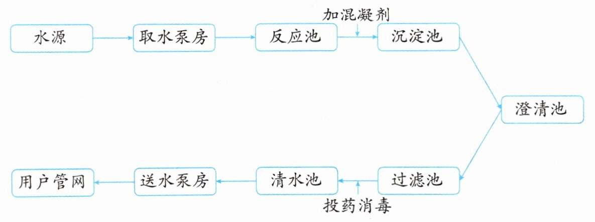 活动2 参观家庭或学校所在地区的自来水厂,了解自来水的生产过程,关注物质分离和提纯的方法及原理,尝试绘制自来水生产的工艺流程简图。