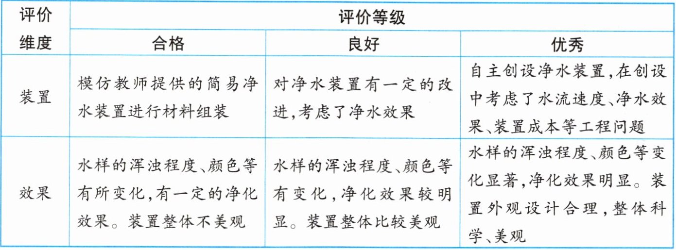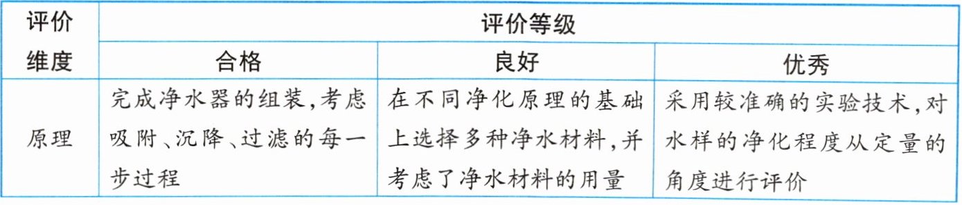 活动6 利用自制净水器净化天然水,从技术与工程的角度进行评价,并进一步优化自制净水器。