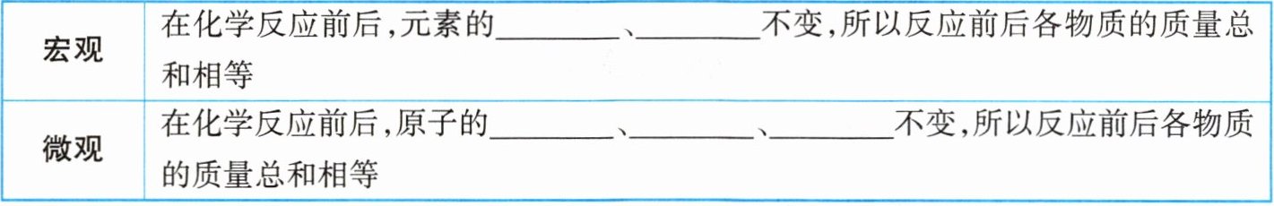 |宏观|在化学反应前后,元素的____、____不变,所以反应前后各物质的质量总和相等|