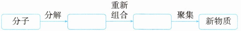 分子 $\xrightarrow{分解}$ ____ $\xrightarrow{重新组合}$ ____ $\xrightarrow{聚集}$ 新物质