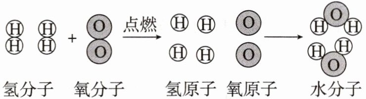 下图是氢气在氧气中燃烧的微观示意图,请结合图示解决下列问题。