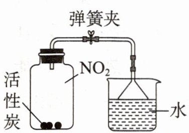 2. (创新实验)如图,将几块经过烘烤并冷却后的活性炭投入盛满红棕色二氧化氮气体的集气瓶中,立即塞上橡胶塞。