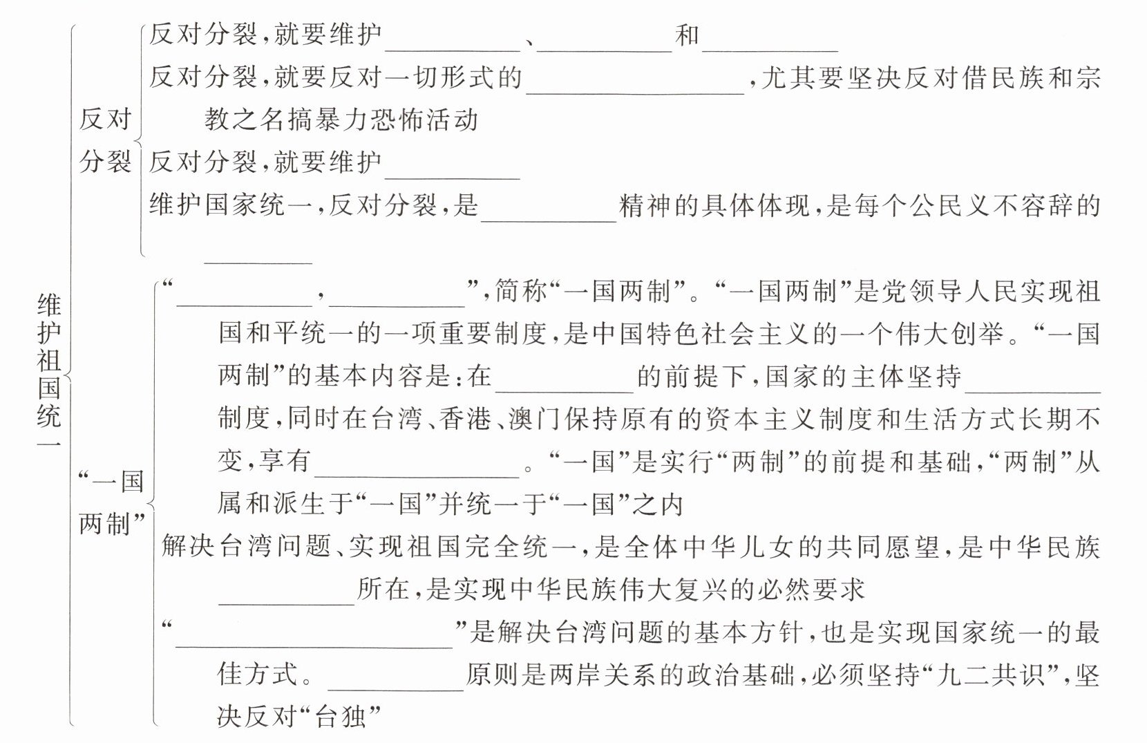 国家统一 国家主权 领土完整 民族分裂活动 国家安全 爱国主义 责任 一个国家 两种制度 祖国统一 社会主义 高度的自治权 根本利益 和平统一、一国两制 一个中国