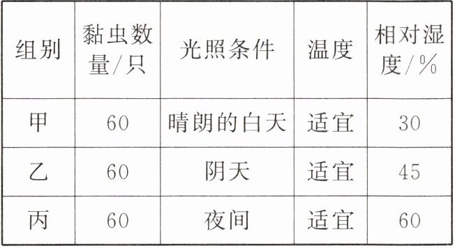 |组别|黏虫数量/只|光照条件|温度|相对湿度/%|