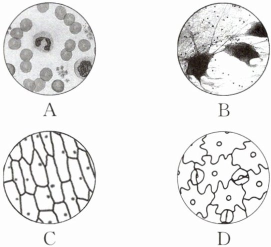 3. 下列四个视野中,属于观察洋葱鳞片叶内表皮细胞的视野是 ( )
