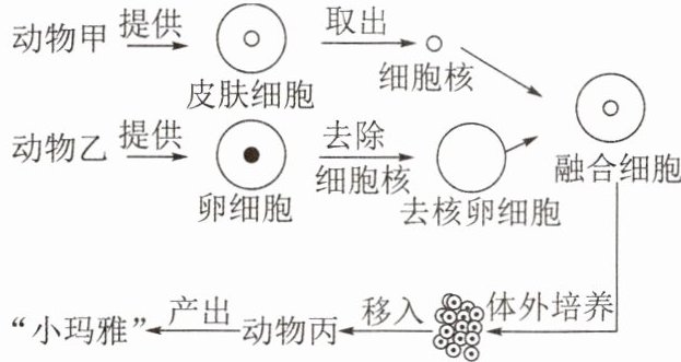 C.“小玛雅”的遗传物质来自动物甲、乙、丙