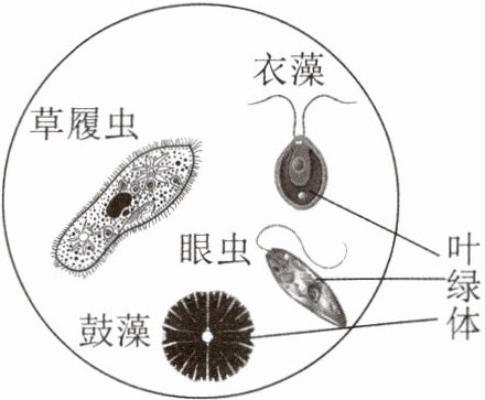 (1)该视野里的单细胞生物中,不能进行光合作用的是 ( )