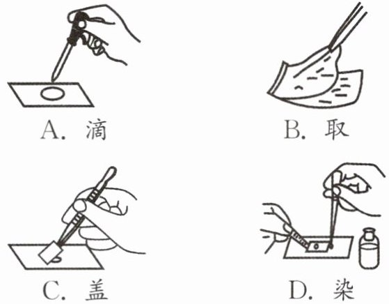 5. 下图是制作人口腔上皮细胞临时装片的操作步骤,正确的排序是( )