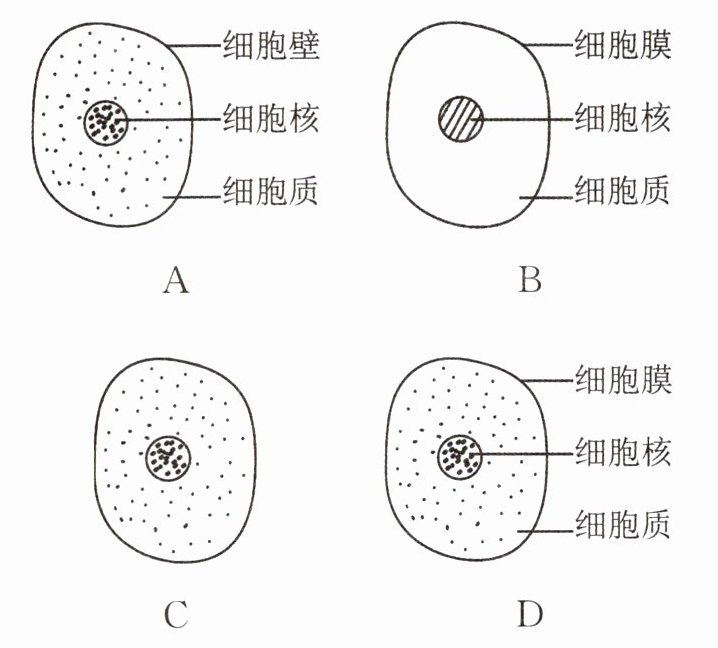 12. 实验小组四位同学根据自己在视野中看到的图像绘制了人口腔上皮细胞结构示意图。下列图中,结构正确且符合生物绘图基本要求的是( )