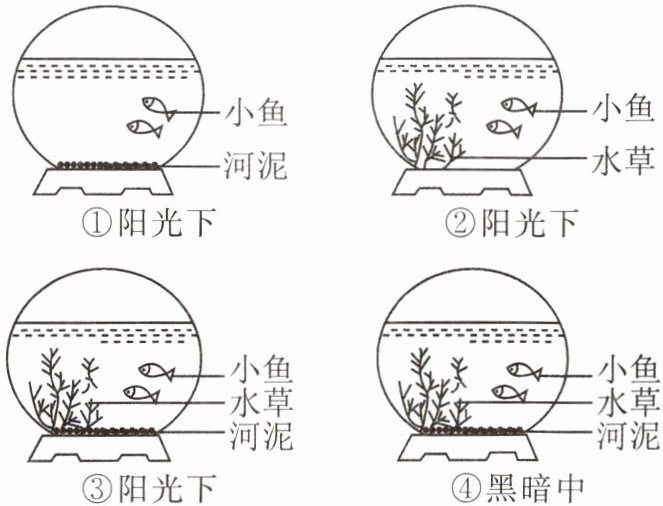 B.正常情况下,生态瓶中小鱼死亡最快的是④