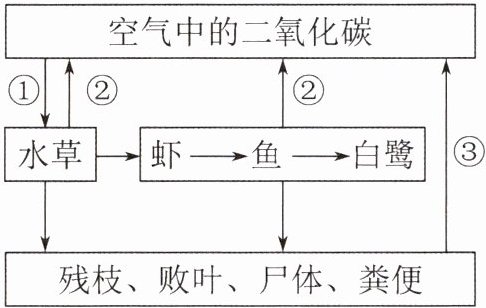 (2)下图显示该生态系统中部分组成成分之间的关系。该生态系统中所有生物体内的有机物归根结底都来自绿色植物的[ ]______。
