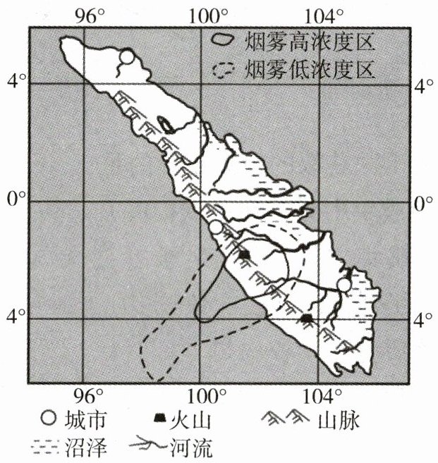 15. 读图,火山喷发时,火山附近的风向是( )