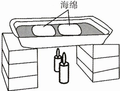 (广东汕头期末)某同学利用铝盆、海绵、蜡烛、水等材料设计了一个模拟地球板块运动的实验(如下图)。实验中发现蜡烛加热区的水流上升,两块海绵分别向左右两侧运动,据此回答13~14题。